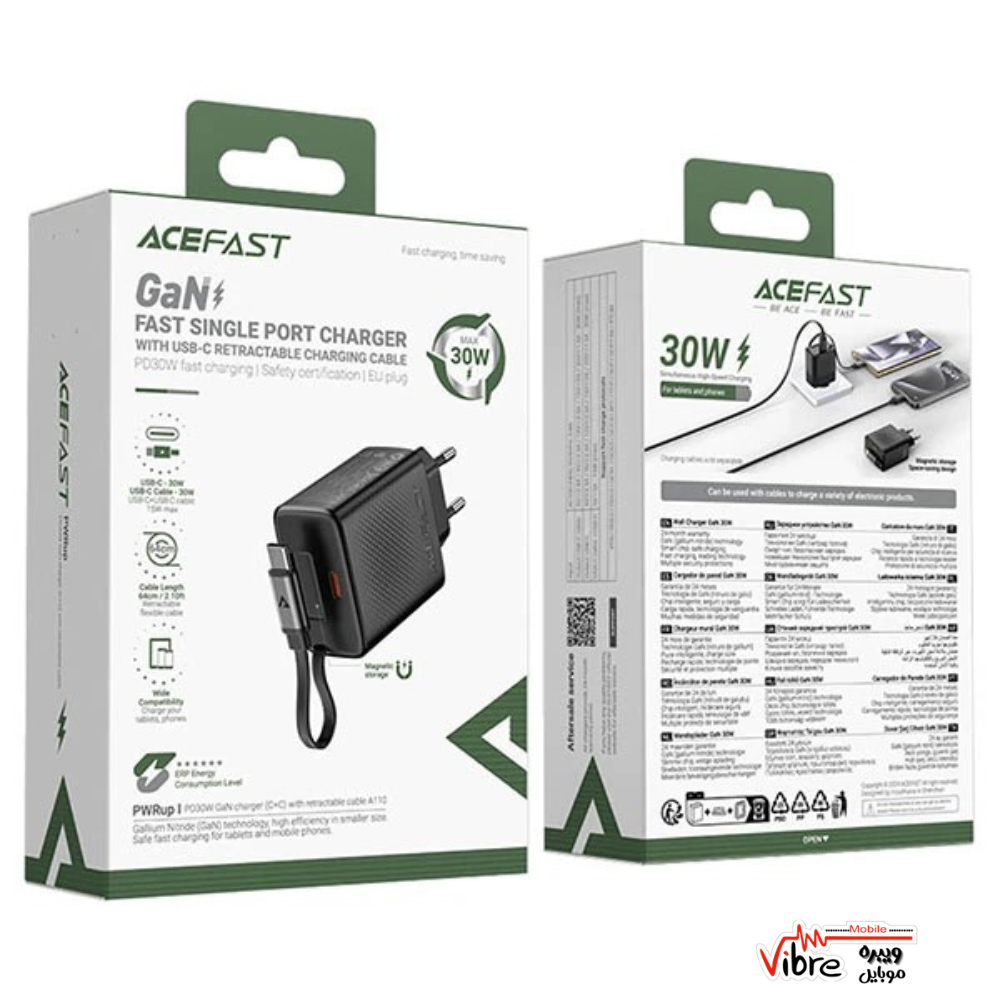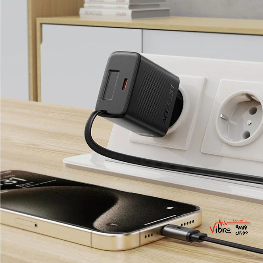 شارژر دیواری ACEFAST A110 PD 30W با کابل USB‑C – کوچک، سریع و کاربردی