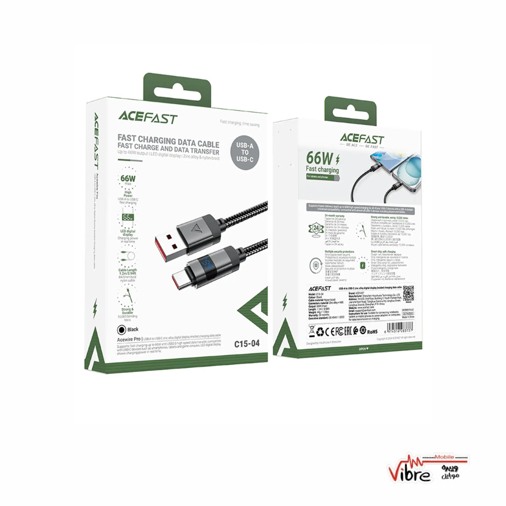 کابل ACEFAST C15-04 USB-C with LED Display با ترکیب شارژ سریع تا 66 وات، نمایشگر LED برای نمایش لحظهای توان و جریان، و ساختار مقاوم، انتخابی حرفهای و کاربردی برای استفاده روزمره، محل کار یا خودرو است که از تجربه شارژ و انتقال دادههای شما لذت بیشتری میبرد.