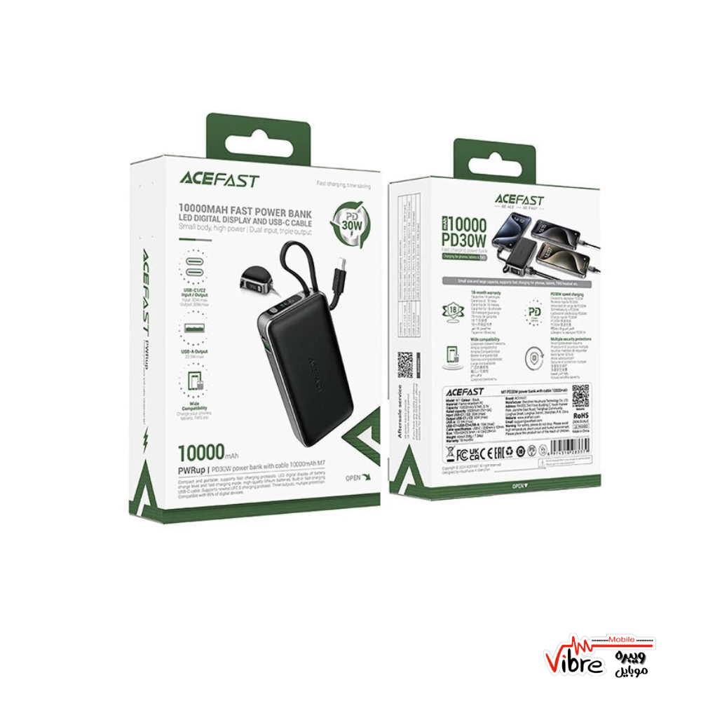پاوربانک ACEFAST M7 PD 30W – ظرفیت 10000mAh، شارژ سریع و قابلاعتماد