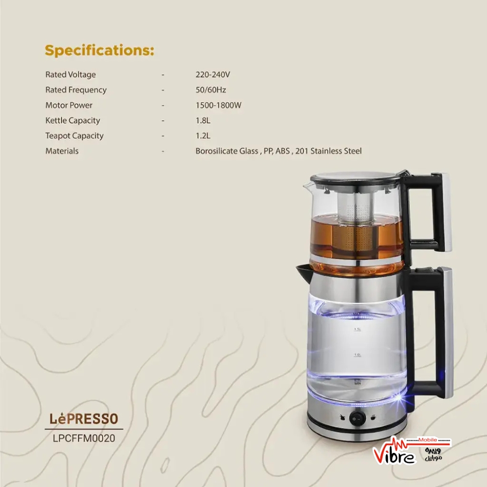 با LePresso Glass Kettle طعم ناب چای ترک را در خانه تجربه کنید؛ زیبا، کاربردی و آماده همیشه برای یه فنجون آرامش.