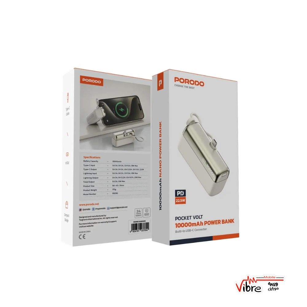 پاوربانک Porodo Pocket-Volt 10000mAh انتخابی ایدهآل برای کسانی است که به شارژ مطمئن و همراه موبایل، تبلت یا دیگر دستگاهها نیاز دارند. این پاوربانک با ظرفیت بالا (۱۰۰۰۰mAh) میتونه حداقل ۲ تا ۳ بار موبایل رو شارژ کنه.